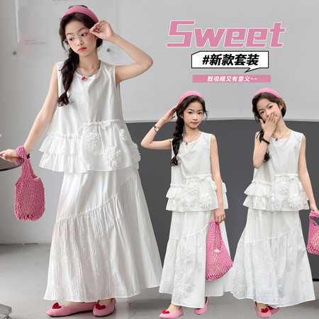 1*4下载视频“2618立体刺绣花边无袖套装”